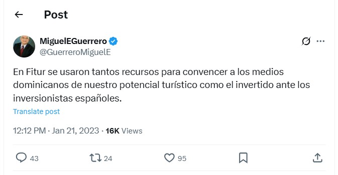 En las filas de la prensa especializada dominicana se escuchan voces críticas sobre el rol de los influencers. El periodista Miguel Guerrero cuestionó, en enero de 2023, el uso de recursos para llevar a influencers nacionales a ferias como FITUR: “En FITUR se usaron tantos recursos para convencer a los medios dominicanos de nuestro potencial turístico como el invertido ante los inversionistas españoles”, denunció en redes sociales.